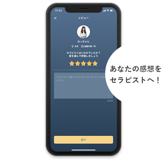 セラピストの励みになりますのでよろしければぜひレビューをお願いします。
